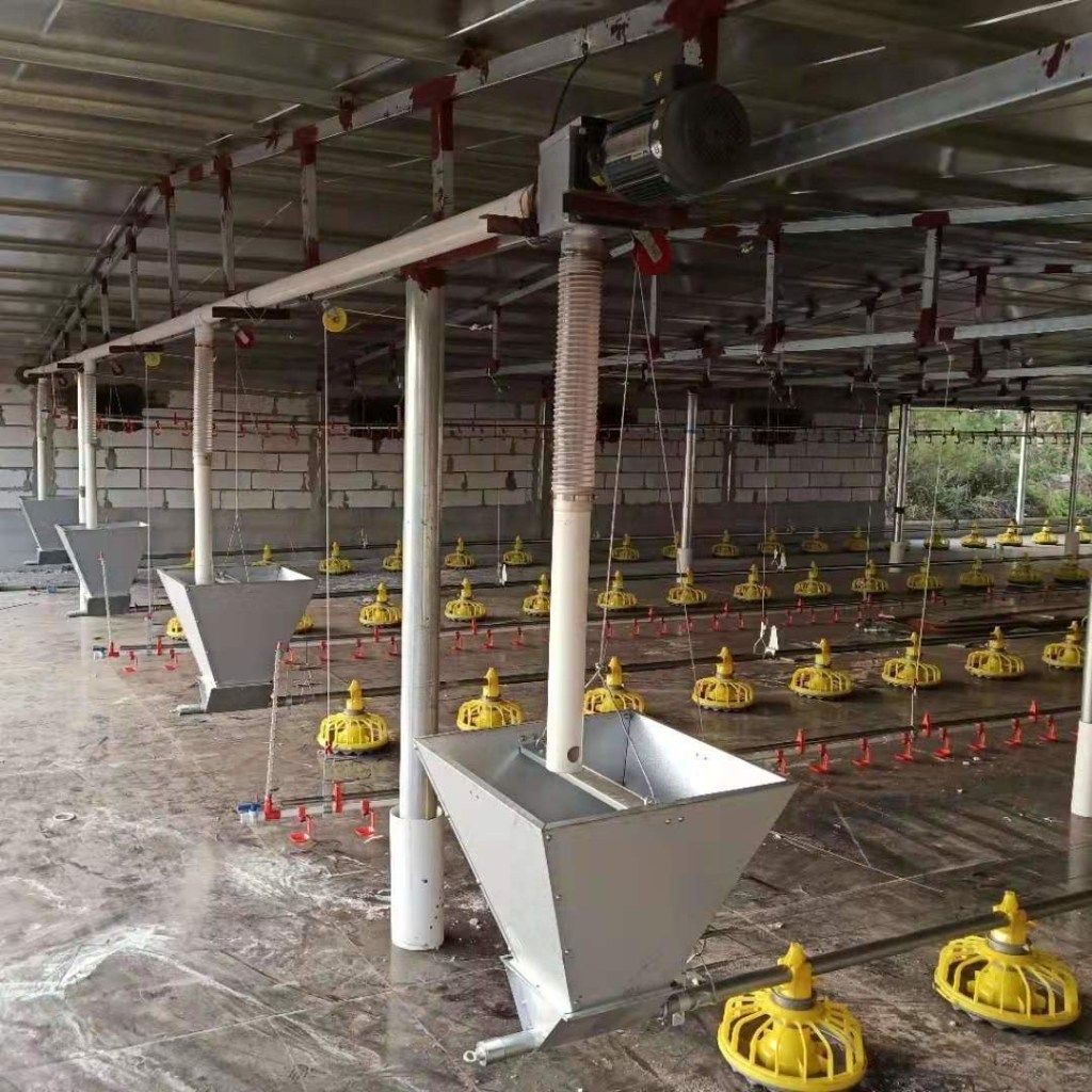 - The conveying system drives stably and can distribute the feed into every pan feeder rapidly and p rovide adquate feed supply;