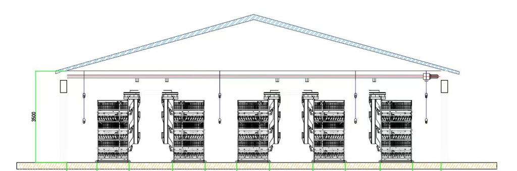 - Components:Cages, front frame, end frame, auto-feeding system, automatic egg collecting system, automatic manure disposal system, automatic drinking system