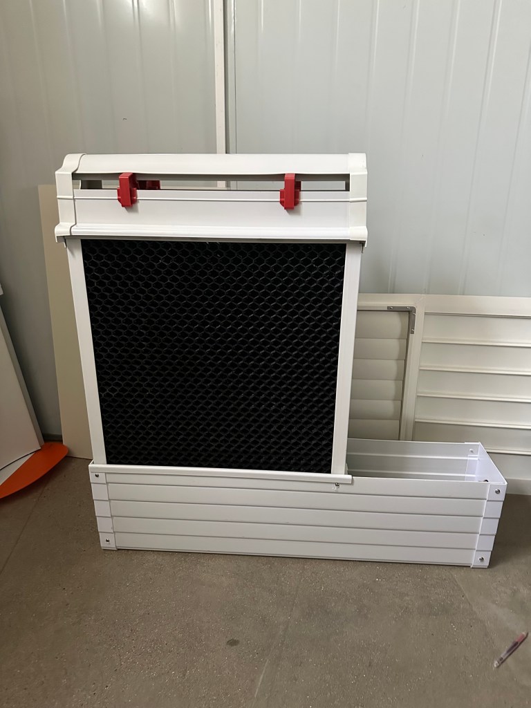- There is a thin water film on the surface of corrugated fiber paper , when the dry heating air outside is crossing the paper packing plate absorbed by wind machine , the water on the thin water film can absorb the heat of air and evaporate into steam , then the cool and humid air can enter the room after treatment. Ventialation fan and cooling pad, best efficient and economic temperature drop measure in summer .